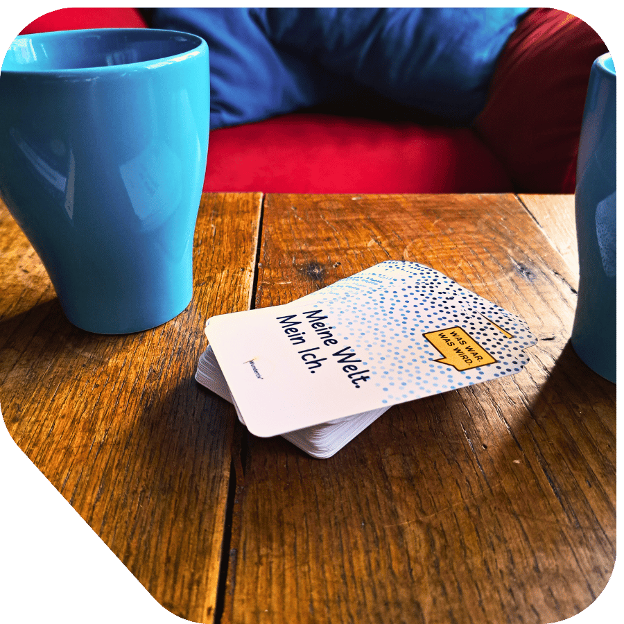 Das Kartenset "Was war. Was wird. Meine Welt. Mein Ich." besteht aus 110 Erzähl- und Gesprächskarten mit abwechslungsreichen Fragen und Impulsen.