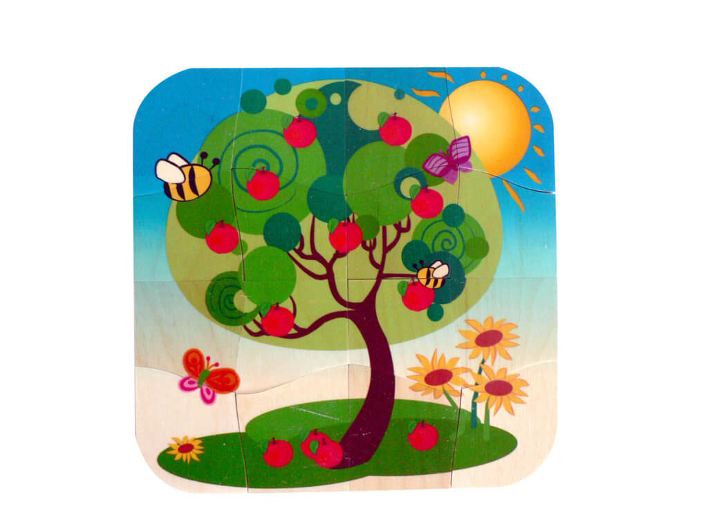 Mit dem Jahreszeiten-Puzzle kann Dein Kind in die Welt der Jahreszeiten eintauchen und spielerisch erfahren, was mit der Natur geschieht und wie sich seine Welt währenddessen verändert.
