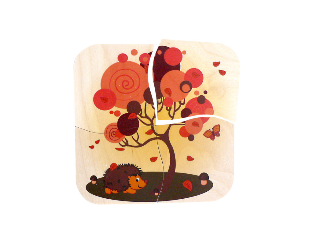 Das Jahreszeiten-Schichtpuzzle ist aus einheimischen Birkenleimholz gefertigt und mit unbedenklichen Farben bedruckt.Es besteht aus einem Legerahmen und 40 Puzzleteilen.